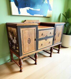 Here is an example of a heirloom piece 1930’s Bureau that we gave a new lease on life.