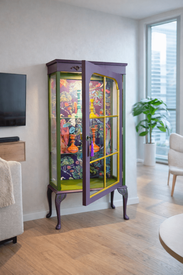 Purple & Green Exotic Birds Gin/ Drinks Cabinet